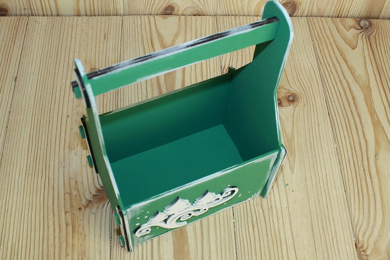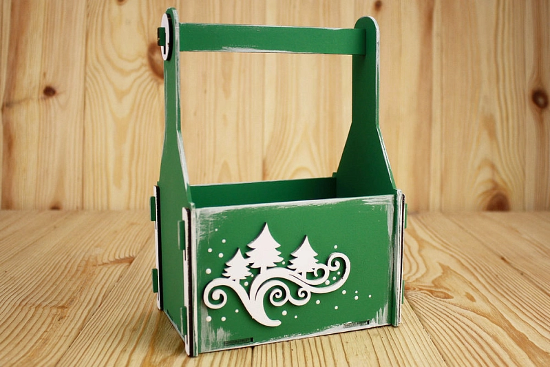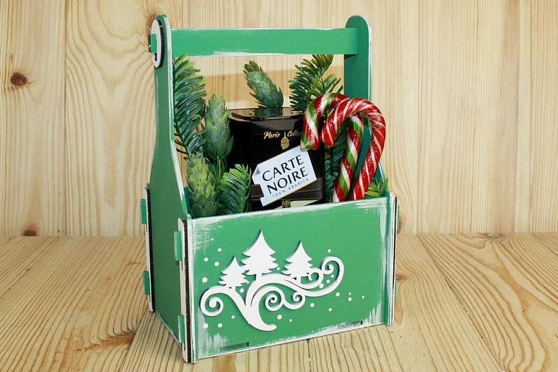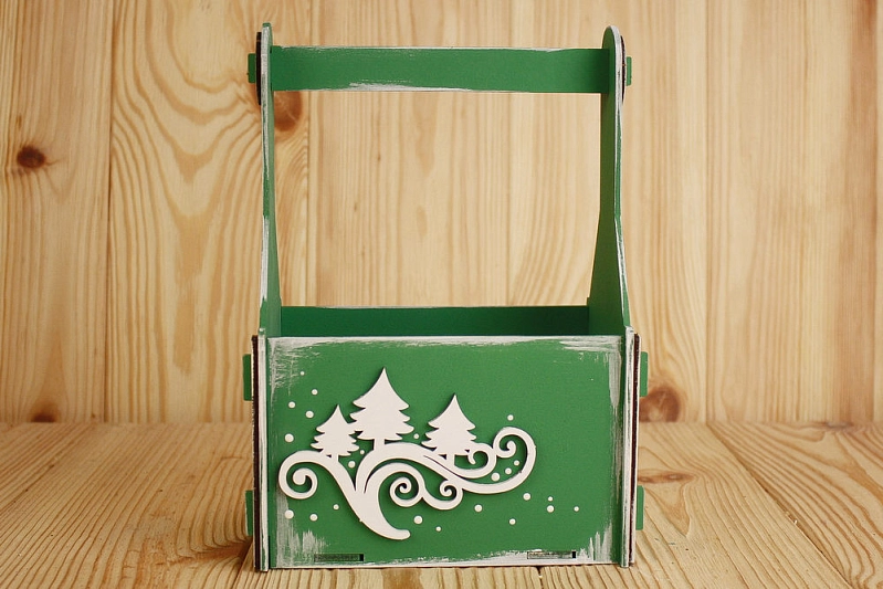 Ящик окрашен и оформлен с вниманием к деталям, что придает ему особую привлекательность. Нежные вензеля и изображение ёлок создают атмосферу уюта и праздника. 🎁