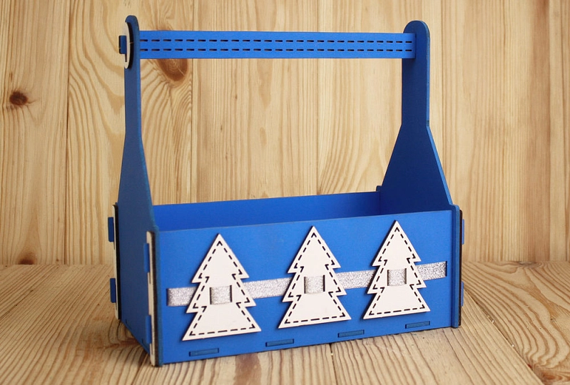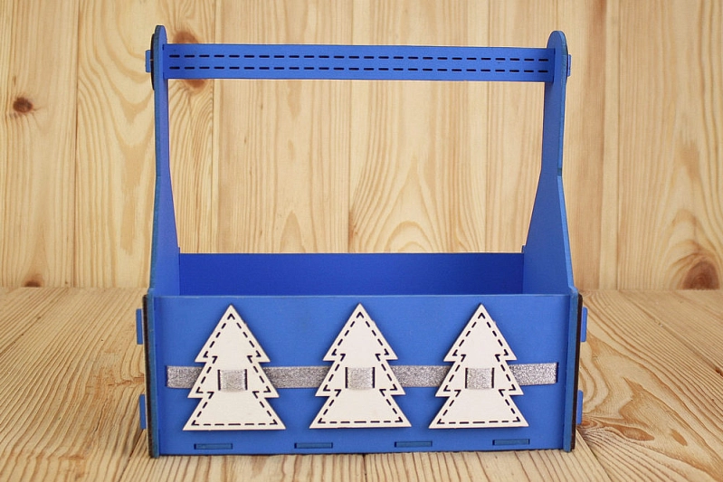 ПУ562-02-0802 Подарочный ящик с ёлками (24,5*13*23) МДФ 3мм, окрашен., оформл., Синий-серебро, 1 шт.