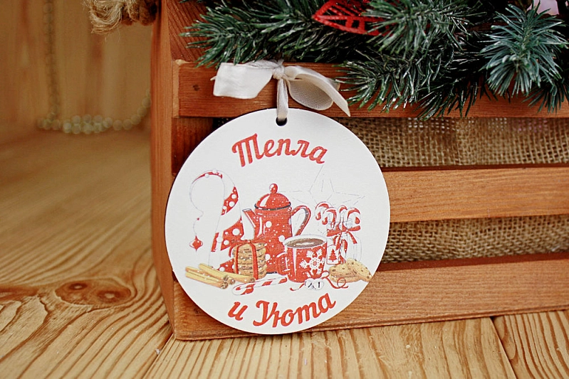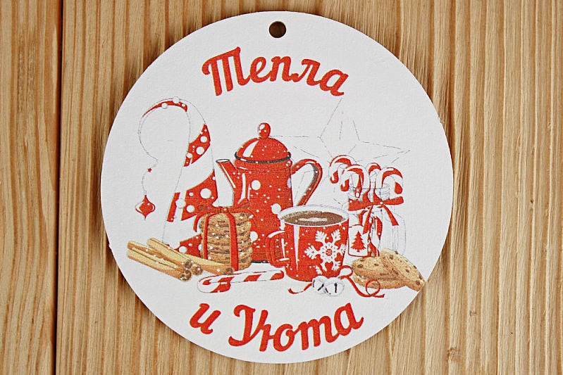 Шильдик "Тепла и уюта" круг (8,5*8,5) МДФ 3мм, УФ печать, Уп-10 шт.