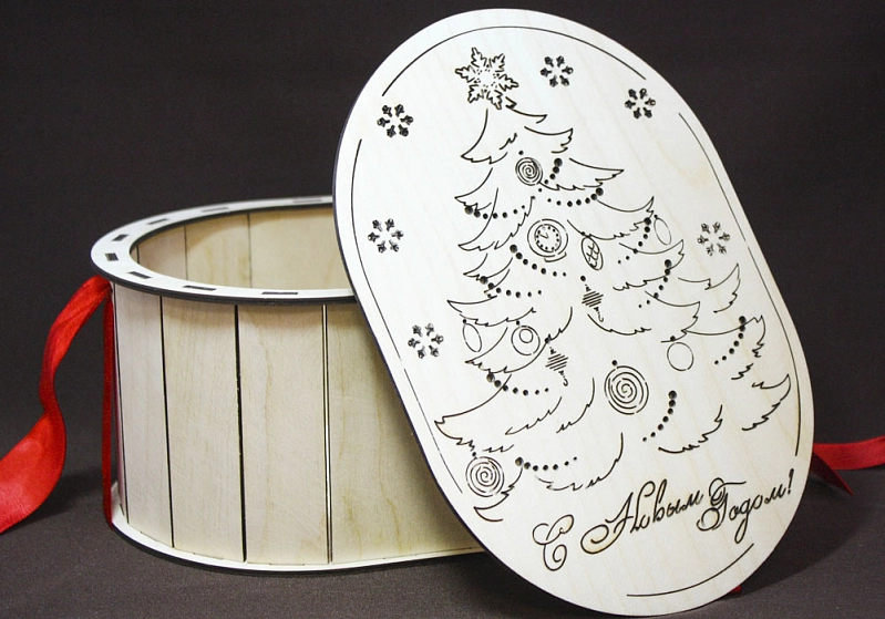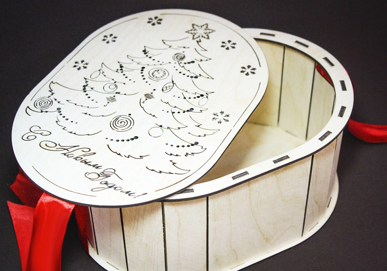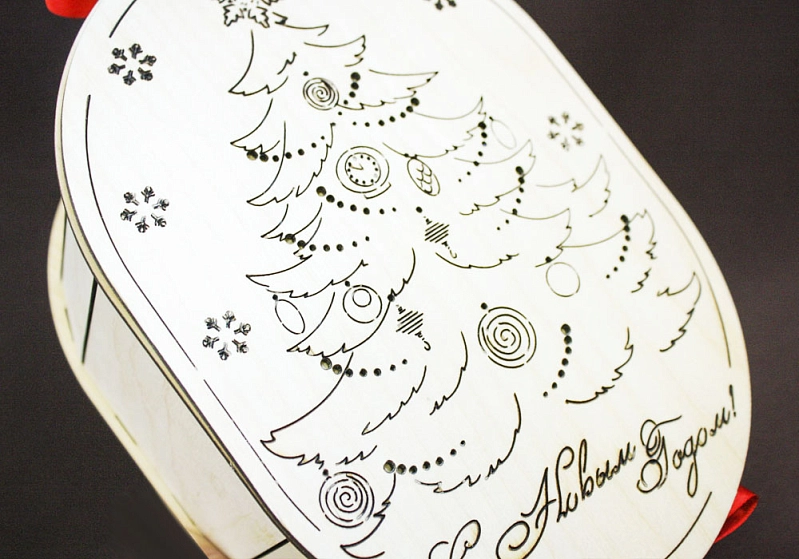 ПУ12-00-0006 Тубус овальный "Новогодняя ёлочка" (23*15,5*10,5) Фанера 3мм, неокраш., оформл. 1 шт.