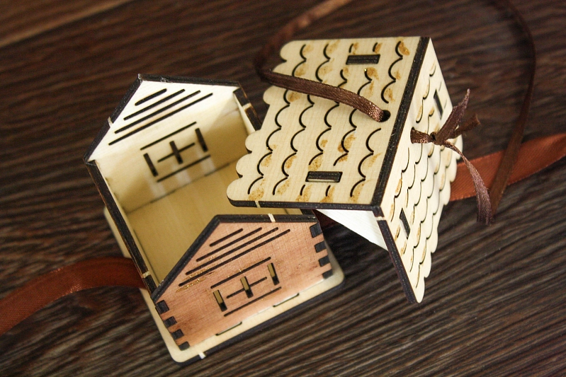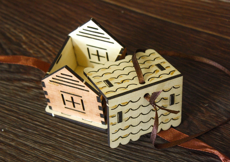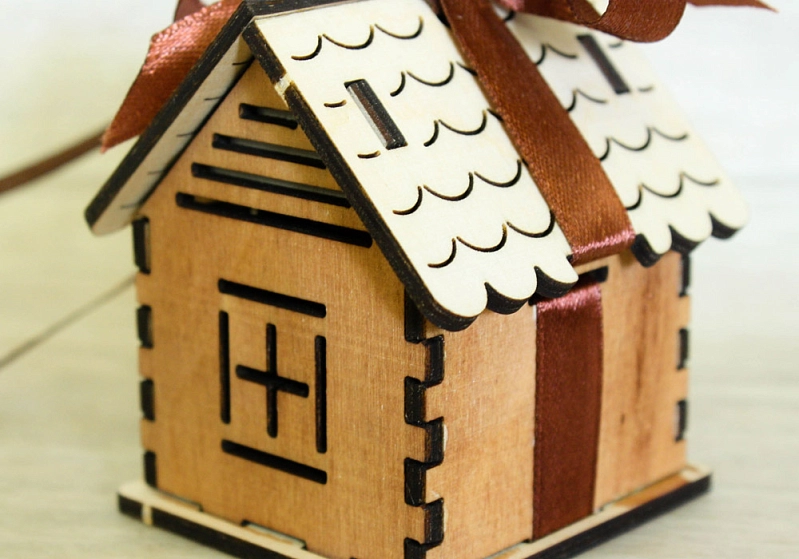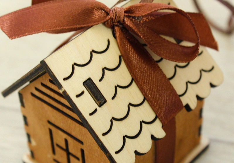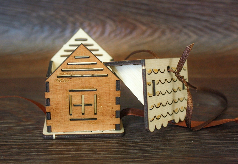 Ёлочное украшение "Домик" (6*5,5*7) Фанера 3мм, окрашен. морилкой, оформл., Дуб, 1 шт.