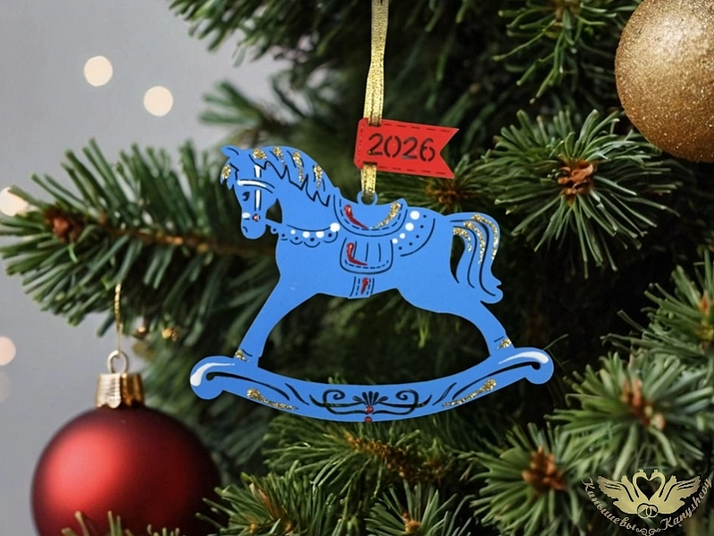 Ёлочное украшение "Лошадка. 2026" (11,5*8,5) Синий-красный, 1 шт.