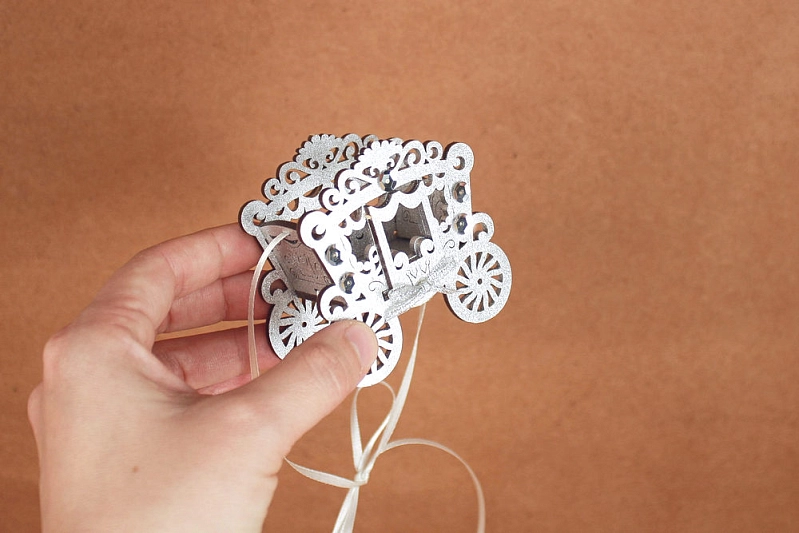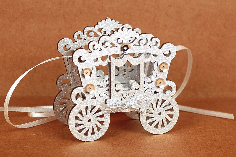 Ёлочное украшение объёмное "Карета" (7,5*4*7) МДФ, окрашен., оформл., Серебро-белый, 1 шт.