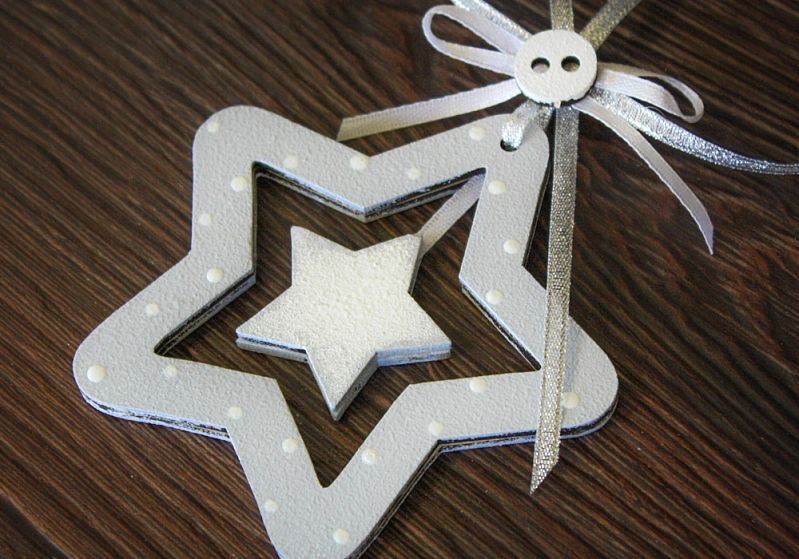 Ёлочное украшение с подвесным элементом "Звезда" (10*10) МДФ 3мм, окрашен., оформл., Серый-серебро, 1 шт.