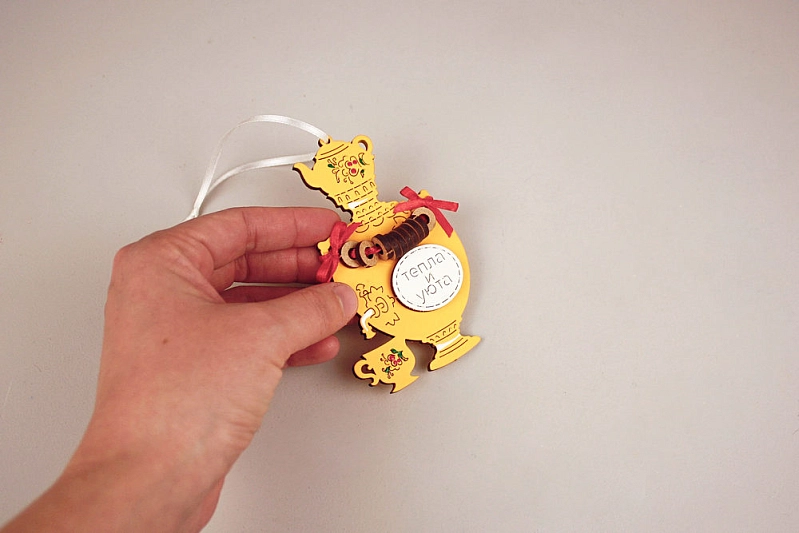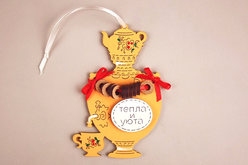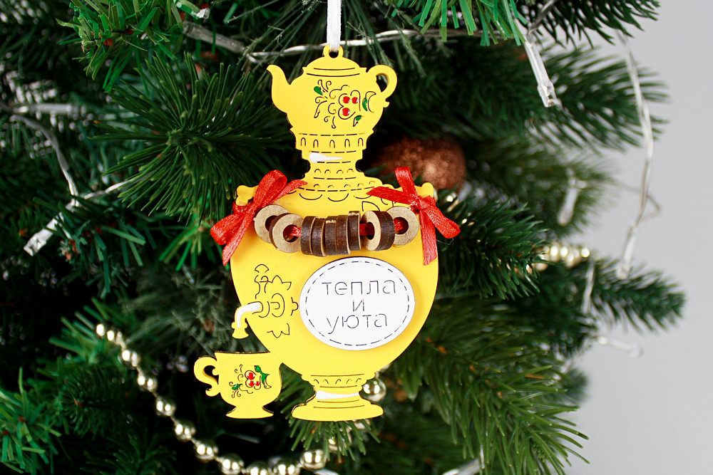 Ёлочное украшение "Самовар" (7*11) МДФ, окрашен., оформл., 1 шт.