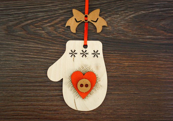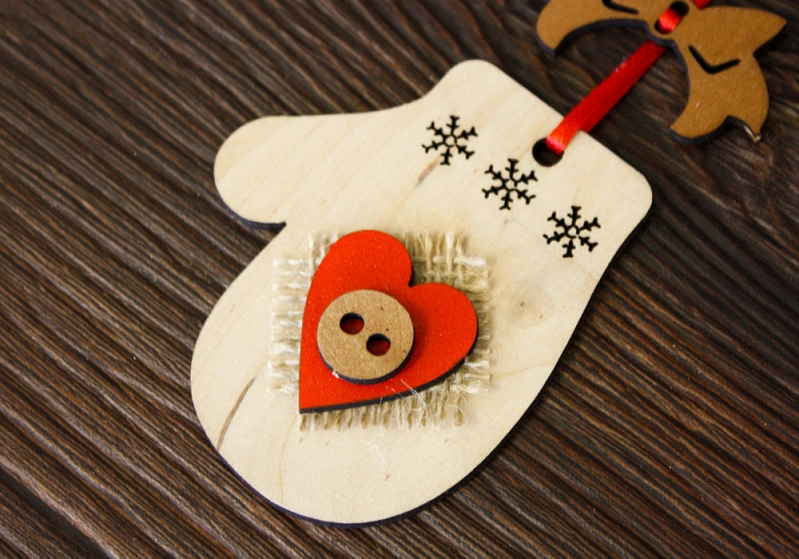 Ёлочное украшение "Варежка" с подвесным элементом (7,5*8,5) Фанера 3мм, окрашен. морилкой, оформл., Дуб-красный, 1 шт.