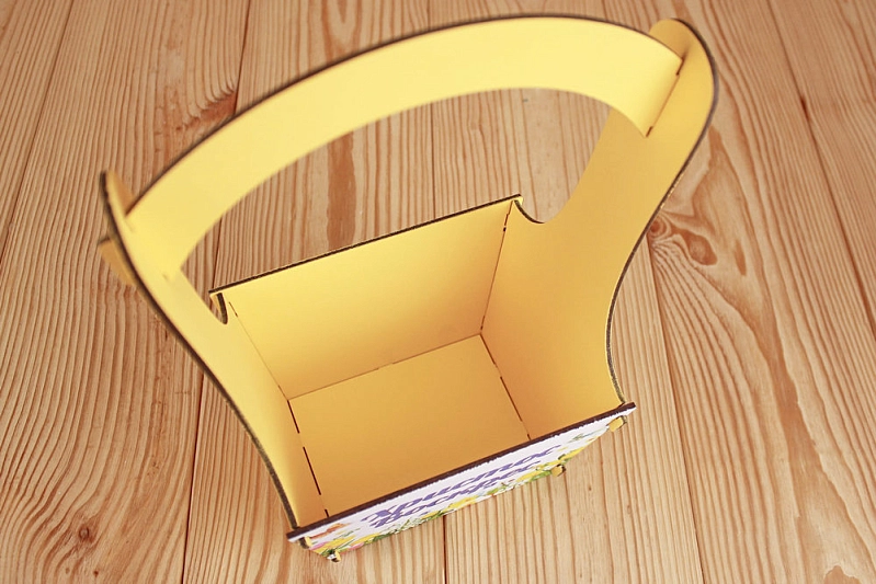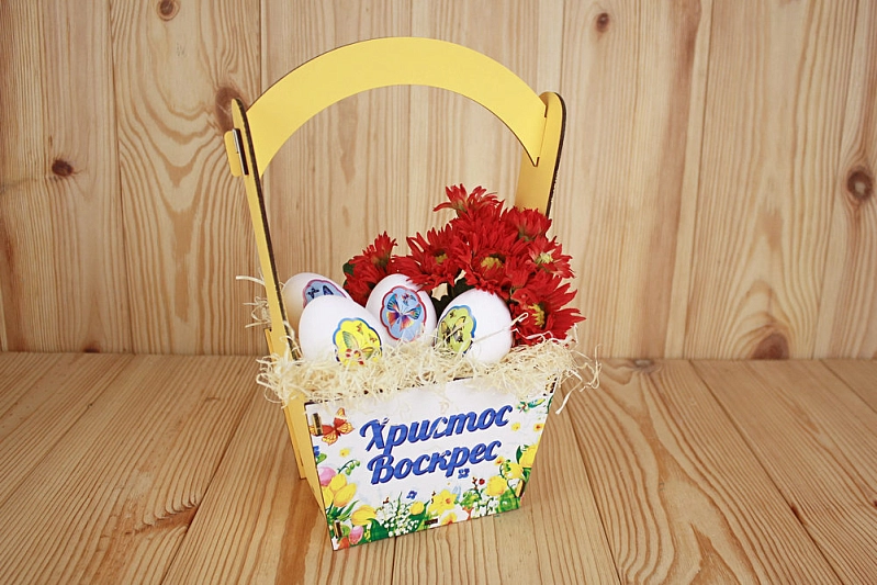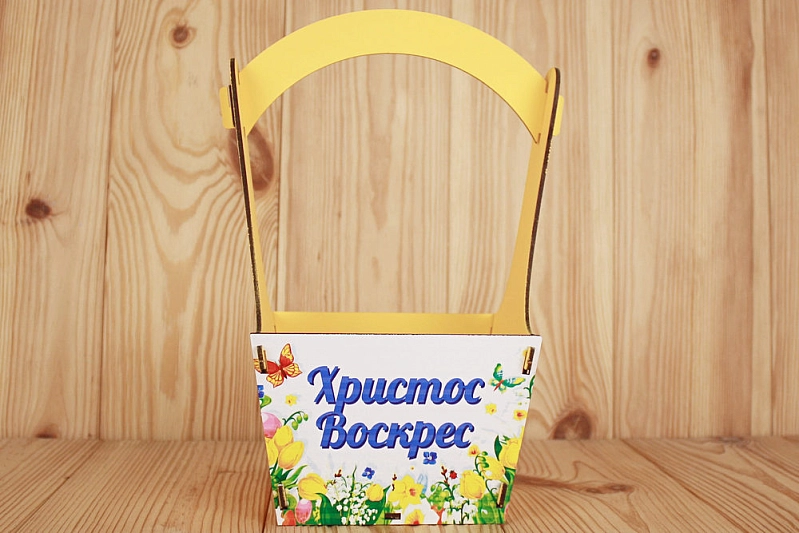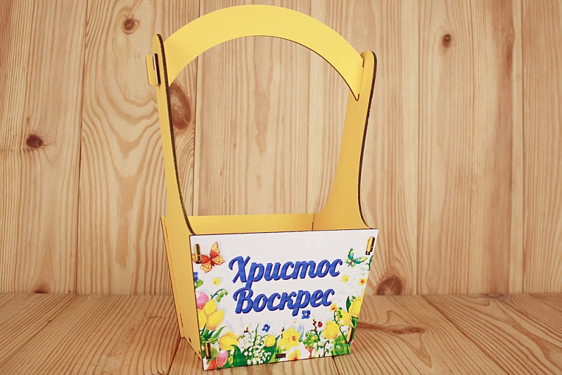 ПУ648-02-1600 Подарочная корзинка "Христос Воскрес" (20*12,5*28,5) МДФ 3мм, УФ печать, окраш., оформл., Желтый, 1 шт.