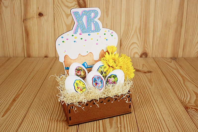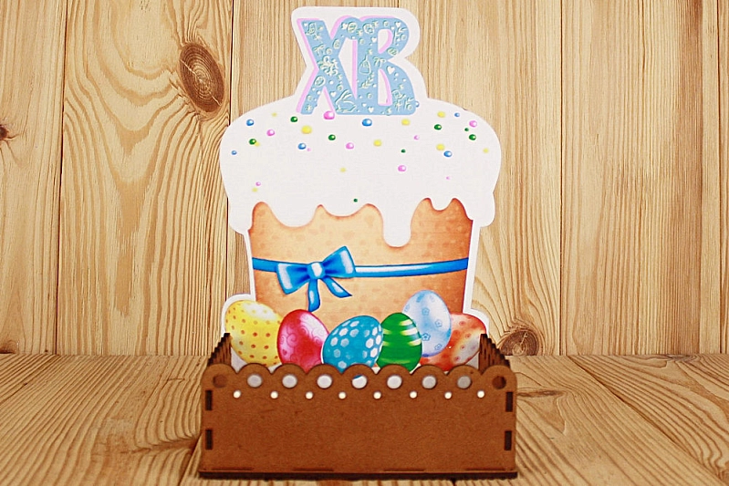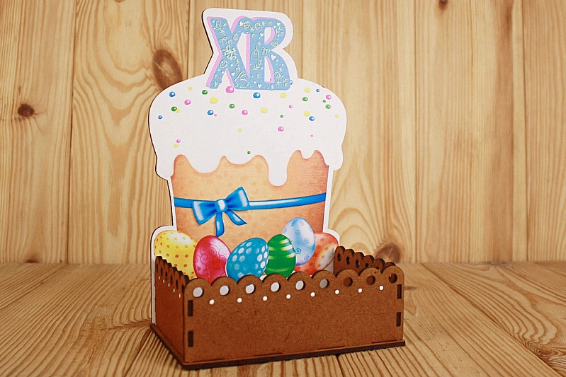 ПУ646-00-3700 Подарочная упаковка "Пасха" (15,7*11*23,2) МДФ 3мм, УФ печать, окраш. морилкой, оформл., Дуб, 1 шт.