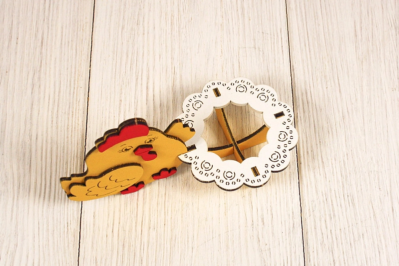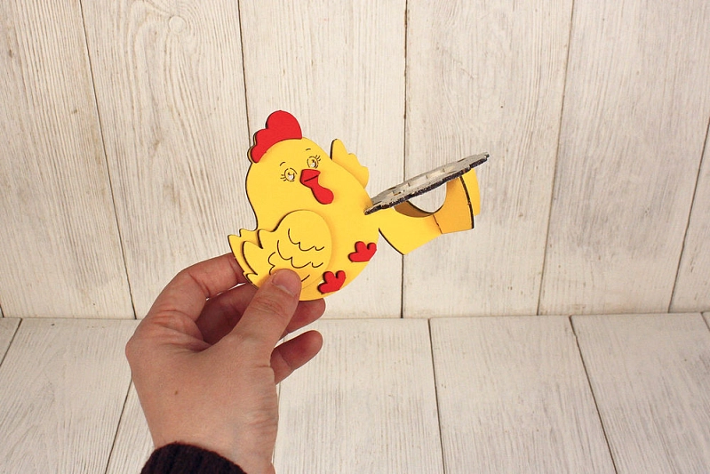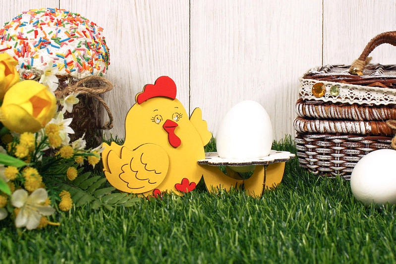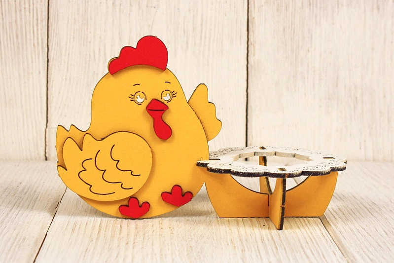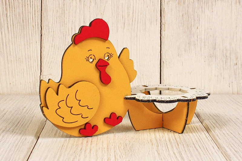Сувенир "Курочка" с подставкой для яичка (15*8*9,5) МДФ, окрашен., оформл., Желтый-белый, 1 шт., БЕЗ СБОРКИ