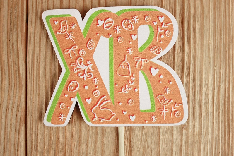 Топпер "ХВ" оранжевый (8,6*28) МДФ 3мм, УФ печать, на шпажке, Уп-10 шт.