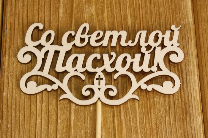 Тп217-02-0000Н Топпер "Со светлой Пасхой!" (12*28) Фанера 3мм, неокраш. на шпажке. Уп-10 шт.