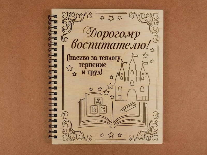 Блокнот на пружине "Дорогому воспитателю" (21*16,8*1,2) Фанера 3мм, оформл., 1 шт.