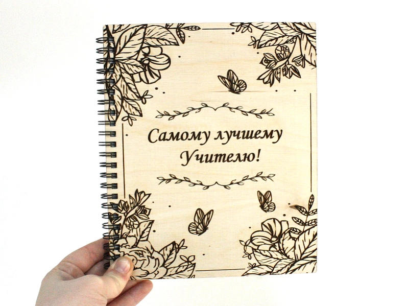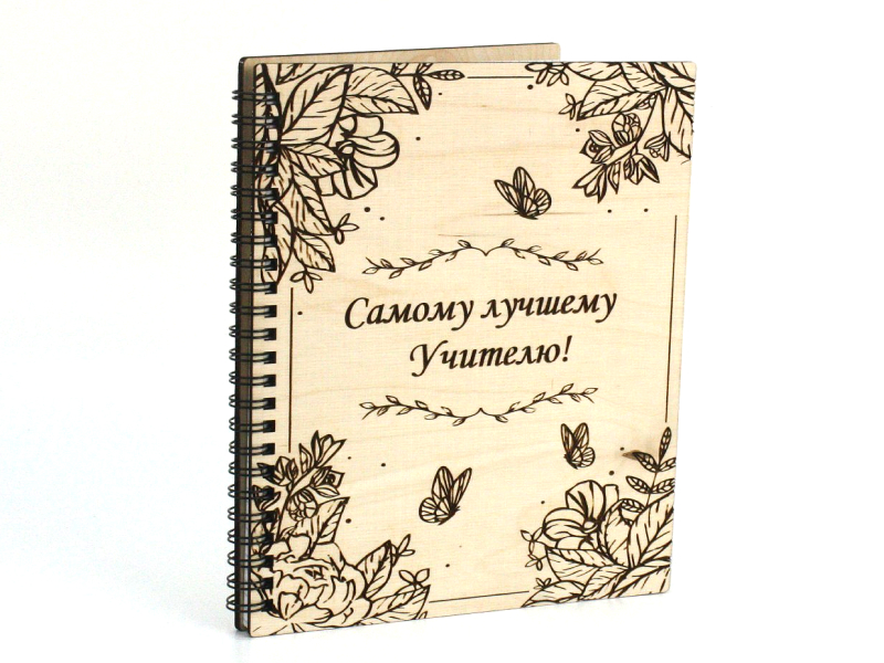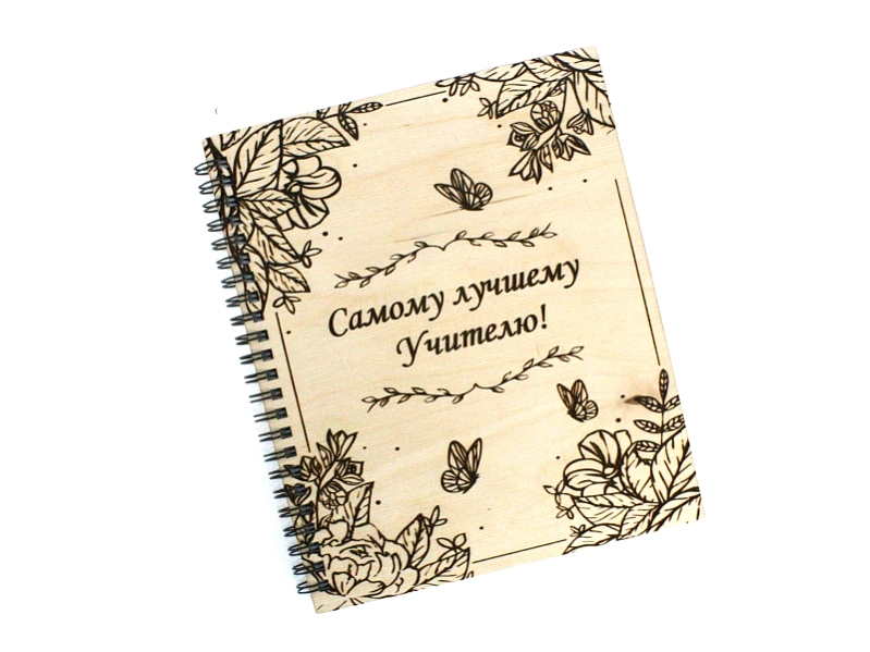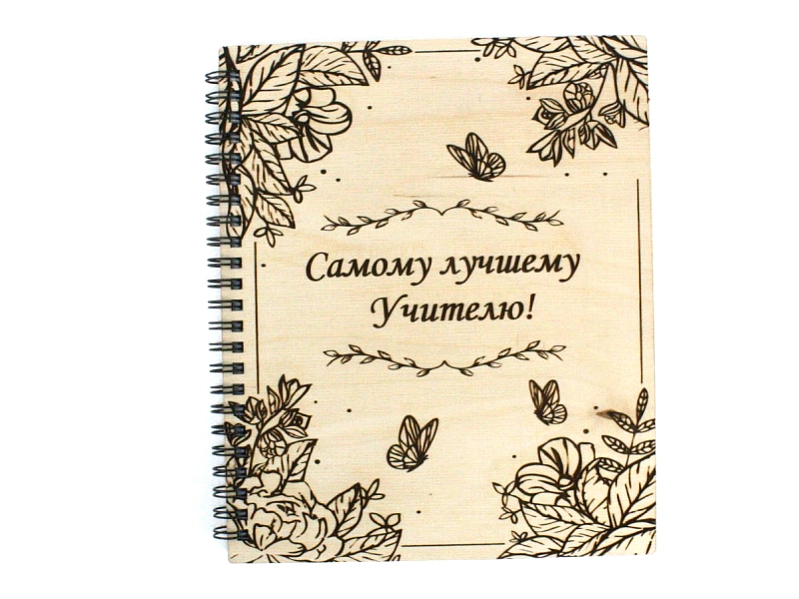Блокнот на пружине "Самому лучшему Учителю!" с гравировкой (21*18*1,5) Фанера 3мм, оформл., 1 шт.