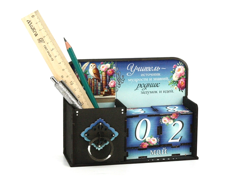 Ищете особенный и практичный подарок для педагога? 🎁 Календарь-карандашница "Учителю!" – это прекрасный выбор, который сочетает в себе функциональность и эстетическое удовольствие. Изготовленный из качественного МДФ толщиной 3 мм, этот аксессус станет стильным дополнением к любому рабочему столу.