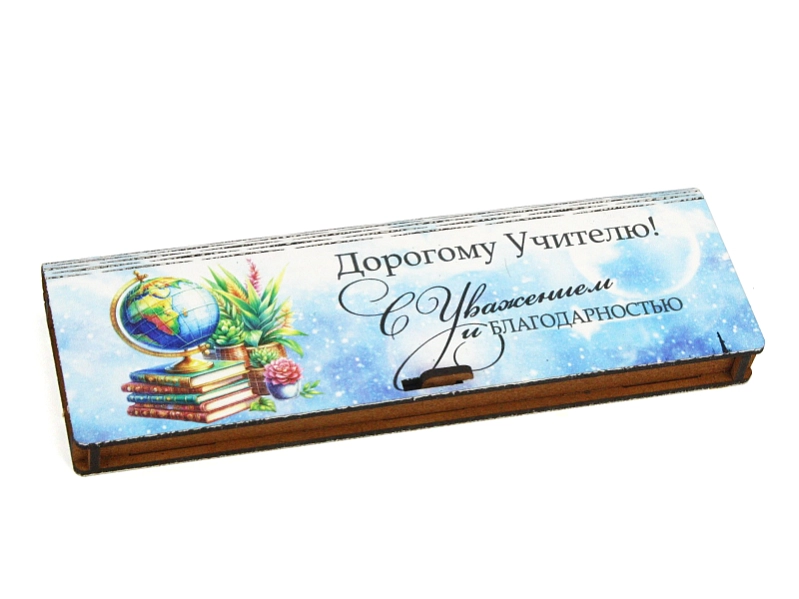 - Оформление: На футляре выполнена яркая и четкая УФ-печать с надписью "Дорогому Учителю!", а также красивым изображением глобуса и книг. 🌍📚
