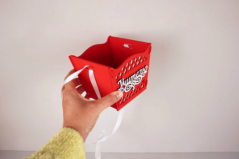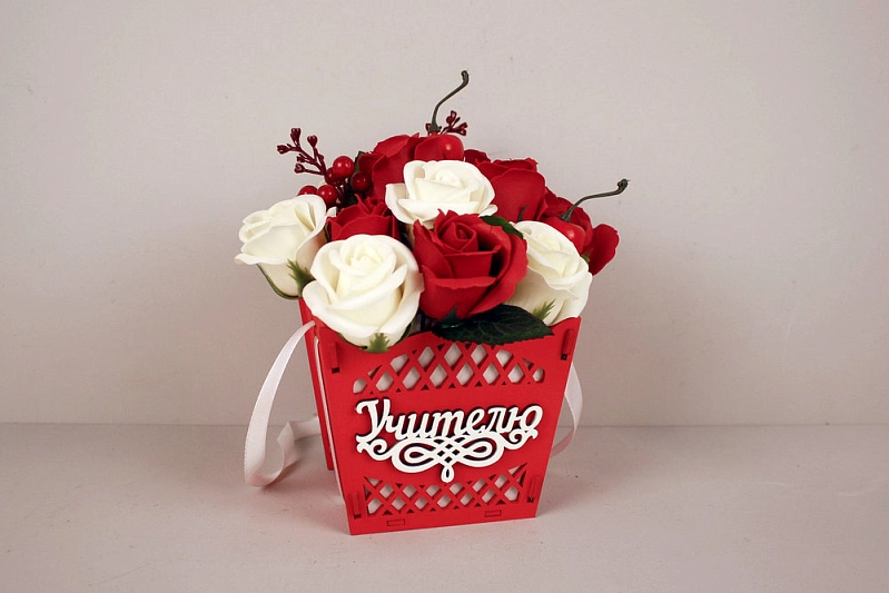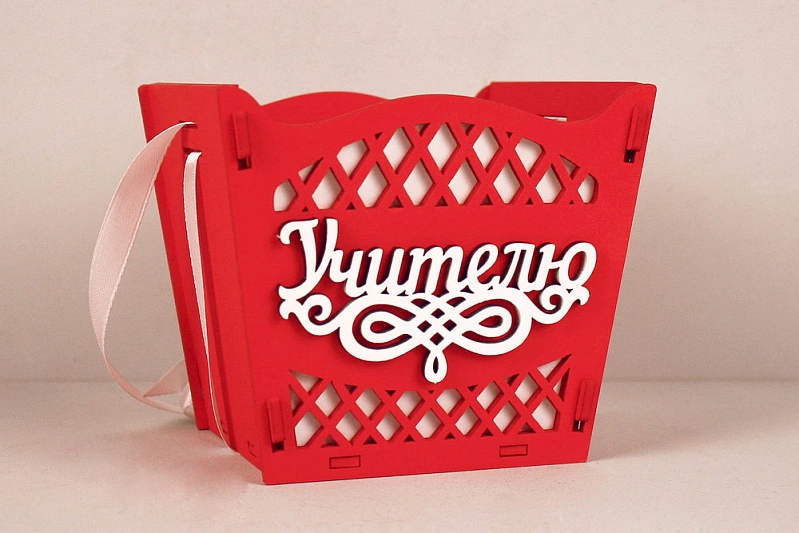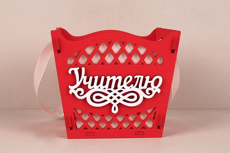 ПУ764-02-0603 Подарочная упаковка-конус "Учителю" средняя (12*12*10,5) МДФ 3мм, окрашен., оформл., Красный-белый, 1 шт.