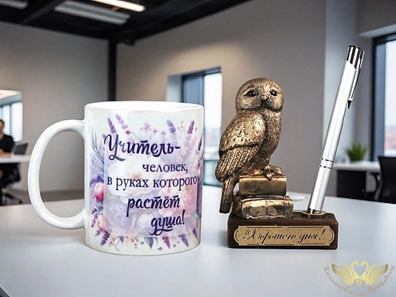 Подарочный набор "Учителю с подставкой "Сова" в коробке.