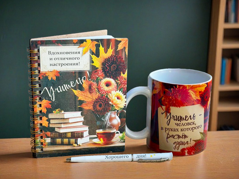 Сув847-00-0000 Подарочный набор "Учителю" в коробке (коробка 20,5*14,5*9,5 см; блокнот мал.+ручка+кружка)