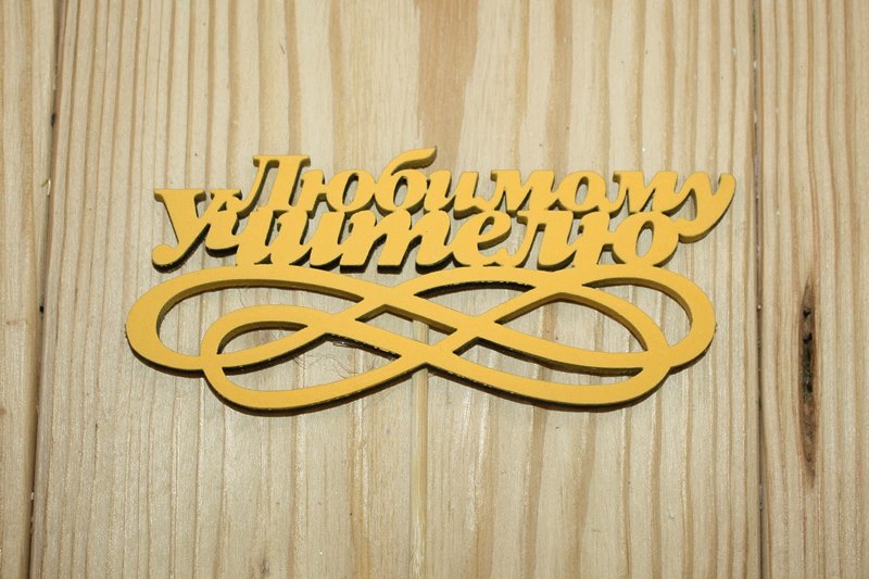 Топпер "Любимому учителю" с вензелем (10*26) МДФ 3мм, окрашен., оформл., Желтый, 1 шт.