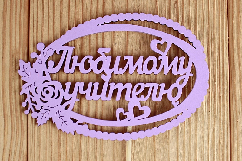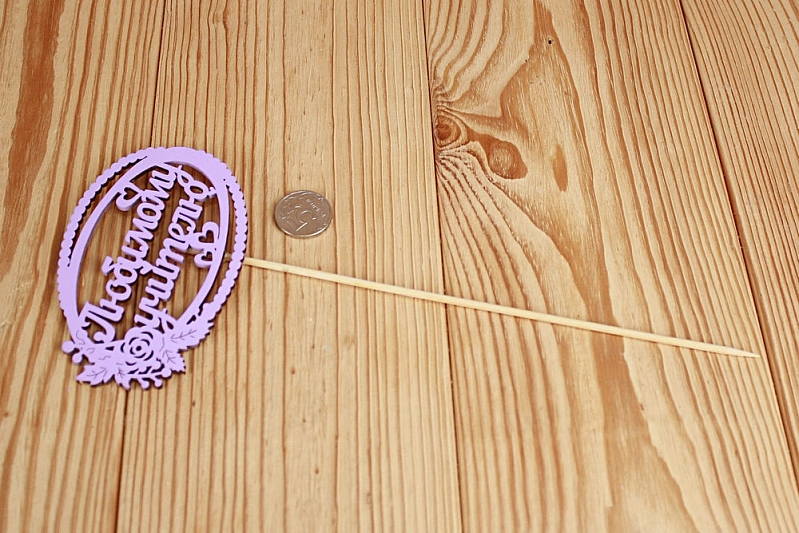 Топпер "Любимому учителю" в овале (12*30) МДФ 3мм, окрашен. на шпажке, Сиреневый, Уп-10 шт.