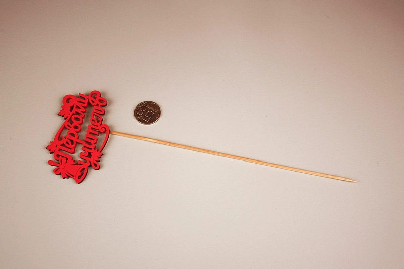 Тп406-04-0606Н Топпер "Первому учителю" (9,5*28) МДФ 3мм, окрашен. на шпажке, Красный, Уп-10 шт.