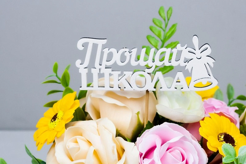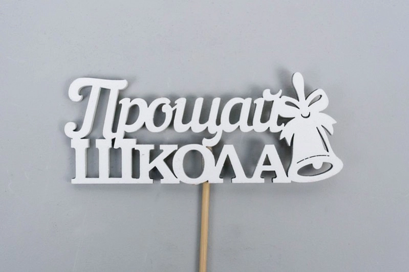 Топпер "Прощай, школа!" (10*27) МДФ, окрашен. на шпажке, Белый, Уп-10 шт.