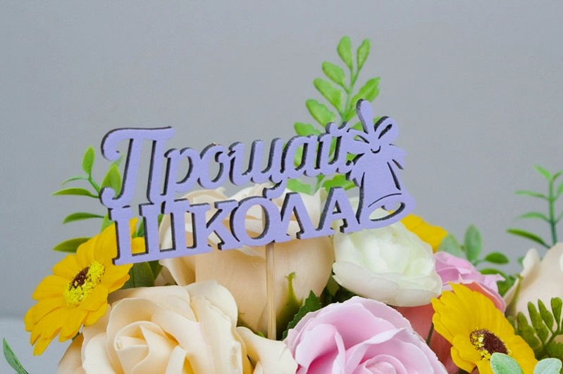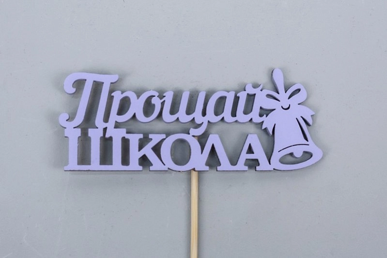 Топпер "Прощай, школа!" (10*27) МДФ, окрашен. на шпажке, Сиреневый, 1 шт.