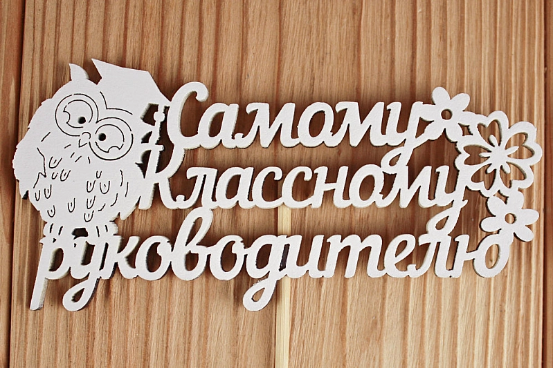 Топпер "Самому классному руководителю" (12*30) МДФ 3мм, окрашен. на шпажке, Белый, 1 шт.