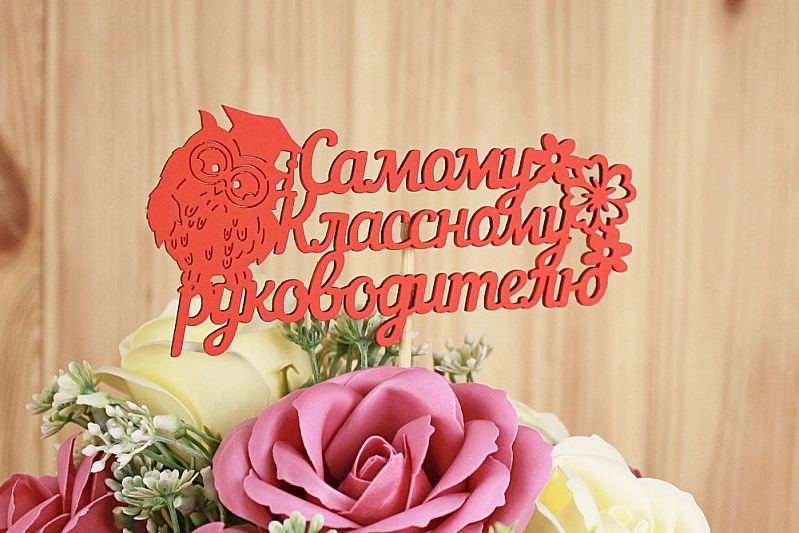 Топпер "Самому классному руководителю" (12*30) МДФ 3мм, окрашен. на шпажке, Красный, 1 шт.