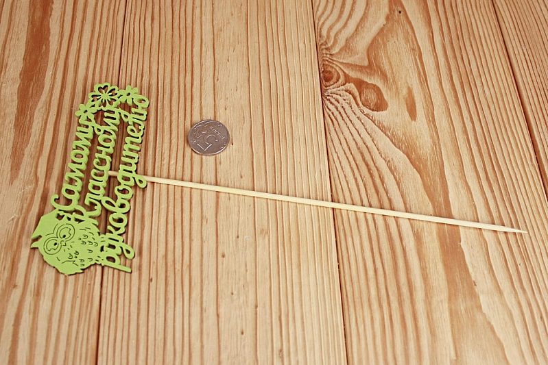 Топпер "Самому классному руководителю" (12*30) МДФ 3мм, окрашен. на шпажке, Салатовый, Уп-10 шт.