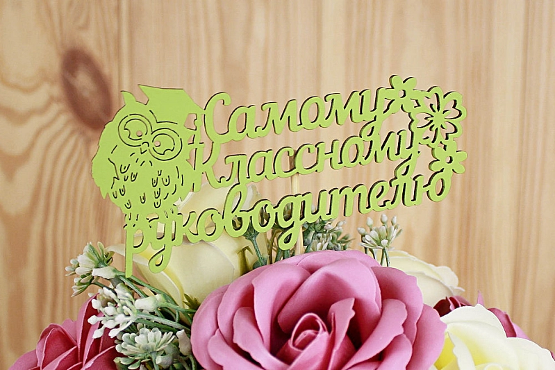 Ищете необычный и памятный подарок для любимого учителя? Этот яркий и стильный топпер станет прекрасным дополнением к любому букету или торту! 🎂 Он изготовлен из качественного МДФ толщиной 3 мм, что обеспечивает прочность и долговечность изделия.