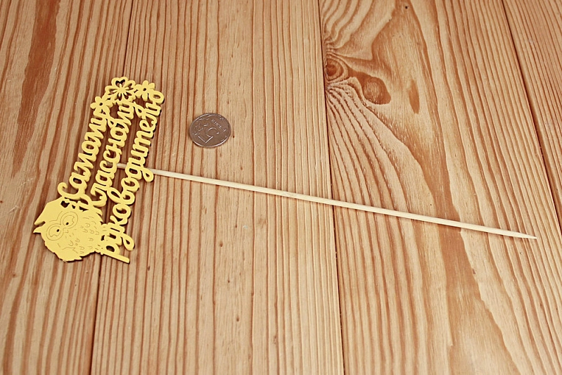 Топпер "Самому классному руководителю" (12*30) МДФ 3мм, окрашен. на шпажке, Желтый, Уп-10 шт.