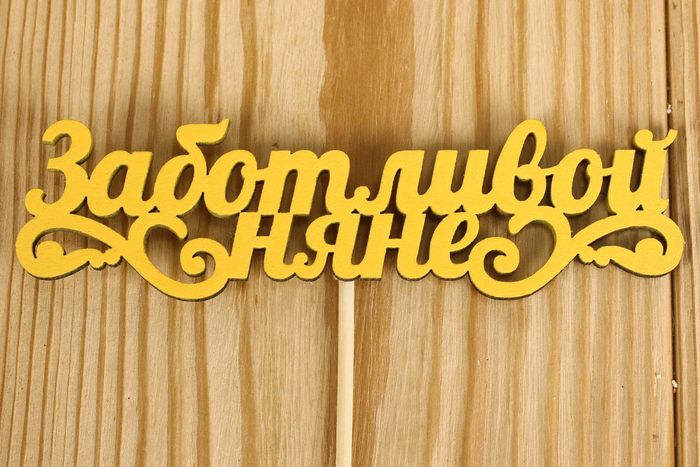 Топпер "Заботливой няне" с вензелями (12*27) МДФ 3мм, окрашен., оформл., Желтый, Уп-10 шт.