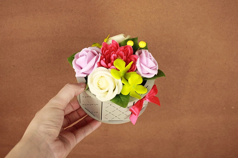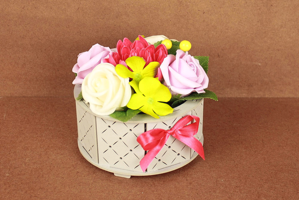 - Материал: МДФ, мыльный цветок - сочетание надежности и красоты.