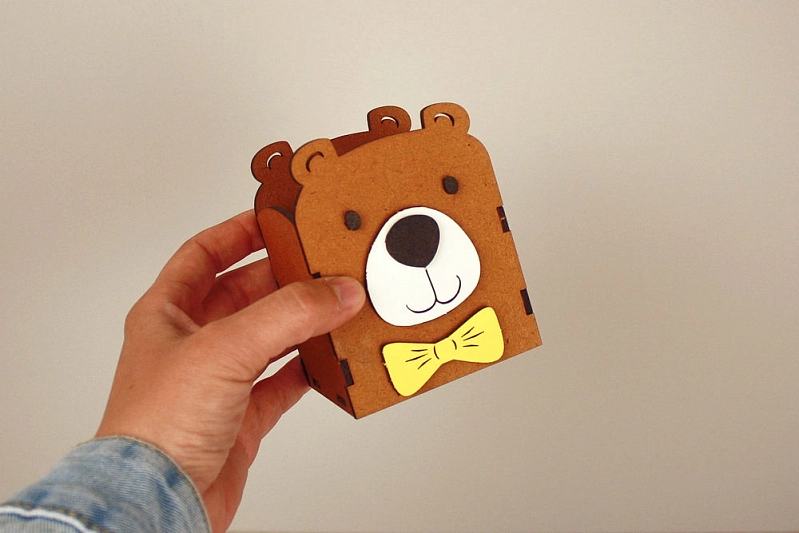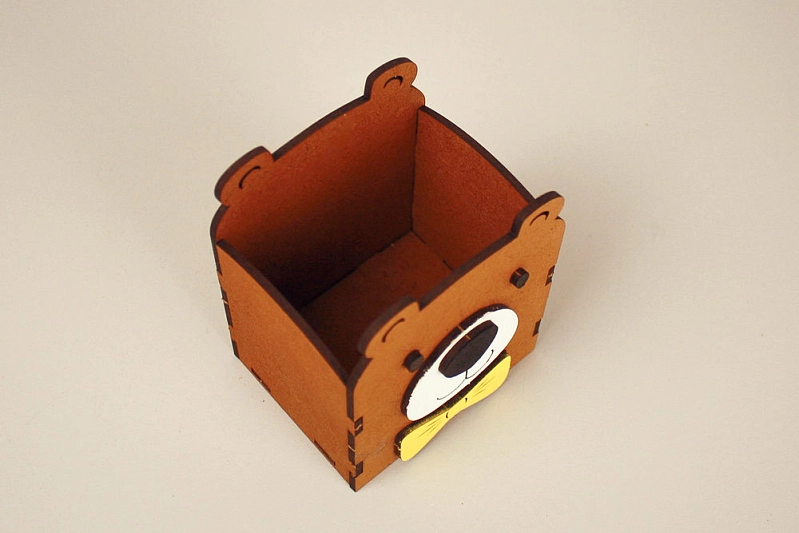 Карандашница "Мишка" (8*6,5*10,5) МДФ, окрашен. морилкой, оформл., Дуб-желтый, 1 шт.