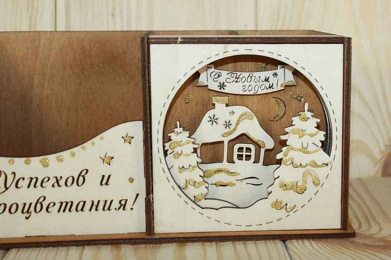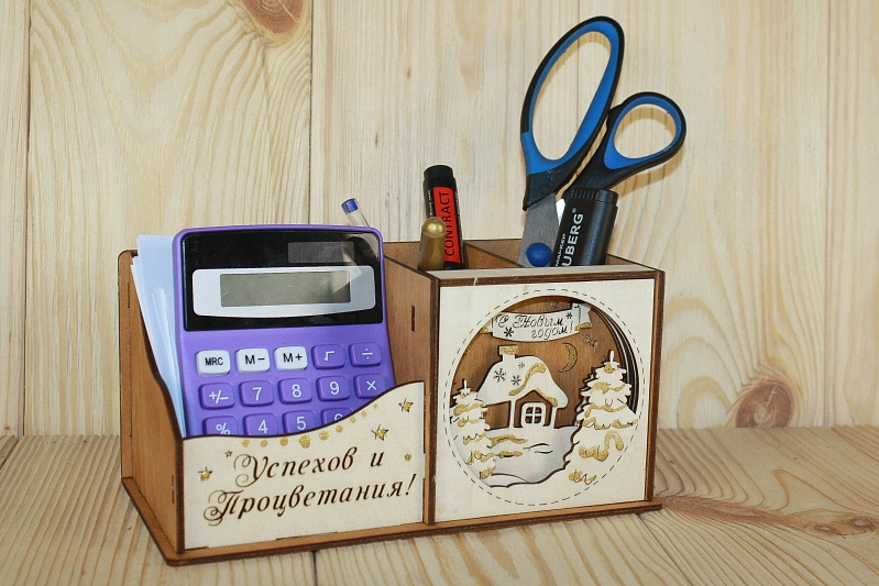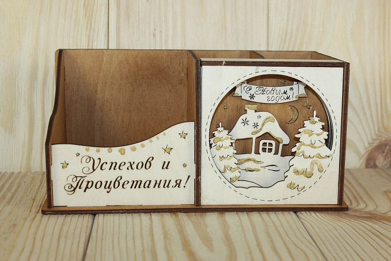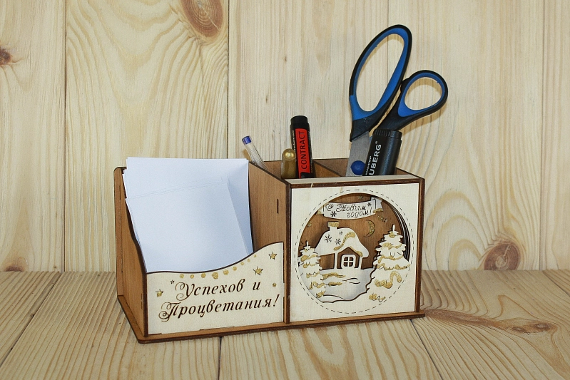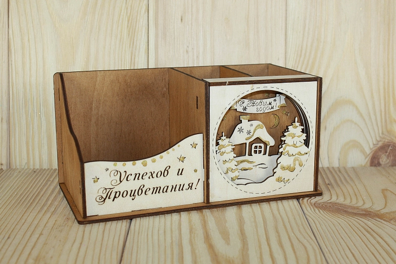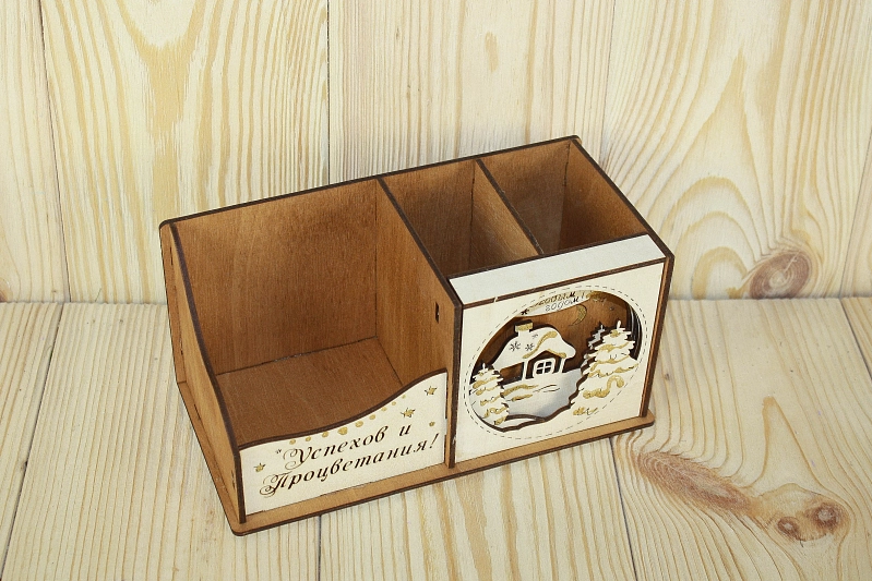 Карандашница "Успехов и процветания" (20*10*9,5) Фанера 3мм, окрашен. морилкой, оформл., Дуб, 1 шт.