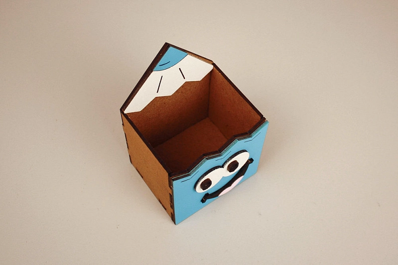 Карандашница "Весёлый карандаш" (8*7*12) МДФ, окрашен. морилкой, оформл., Орех-голубой, 1 шт.
