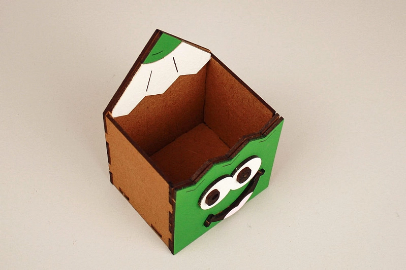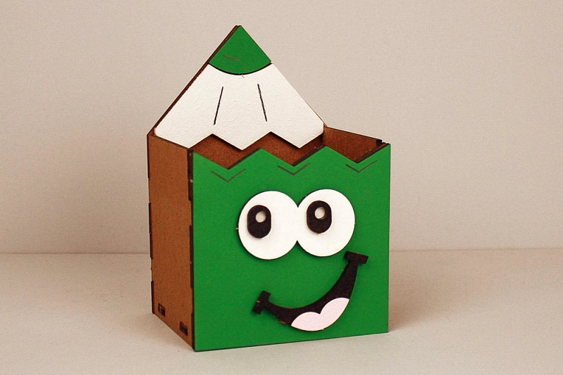 Карандашница "Весёлый карандаш" (8*7*12) МДФ, окрашен. морилкой, оформл., Орех-зелёный, 1 шт.