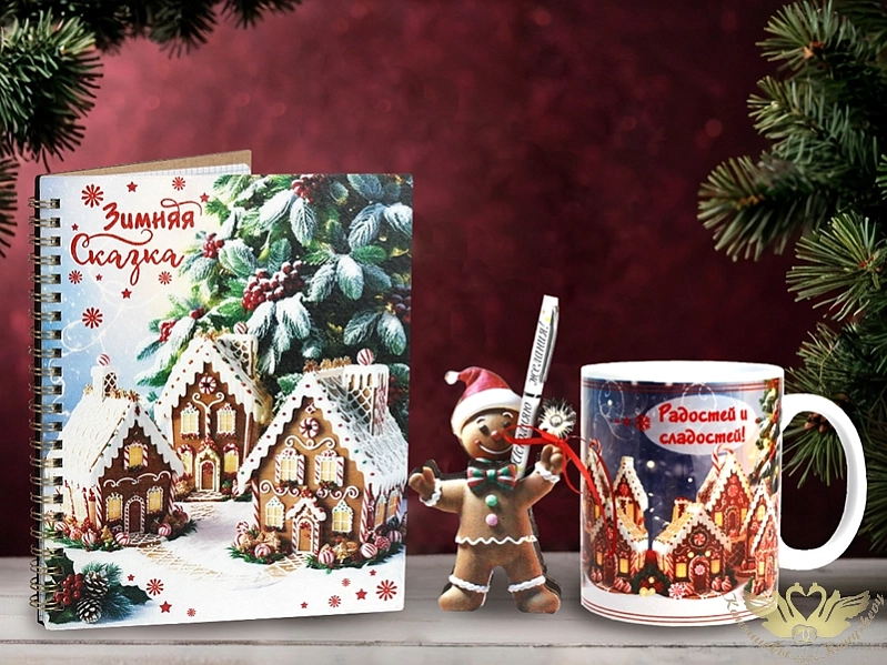 Подарочный набор "Зимняя сказка". Набор: блокнот, кружка, ручка с подставкой.