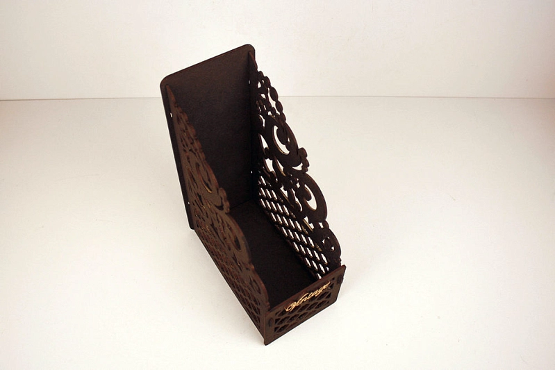 Эта стильная подставка для бумаг формата А5 (9,5*18*24,5 см) изготовлена из качественного МДФ и окрашена морилкой, что придает ей изысканный вид и долговечность. 🌟