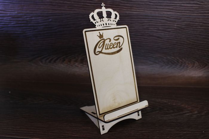 Подставка под телефон "Королева" с гравировкой (10,5*8,5*20) Фанера 3мм, неокраш.,1 шт.