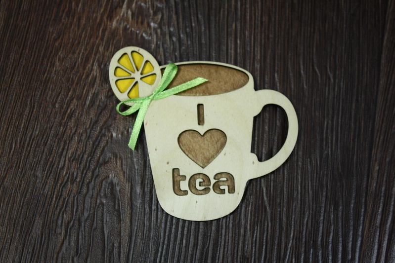 Сувенир-магнит Магнит "Я люблю чай" (9,5*9) Фанера 3мм, окрашен. морилкой, оформл., Дуб, 1 шт.
