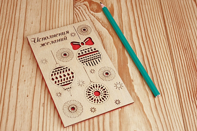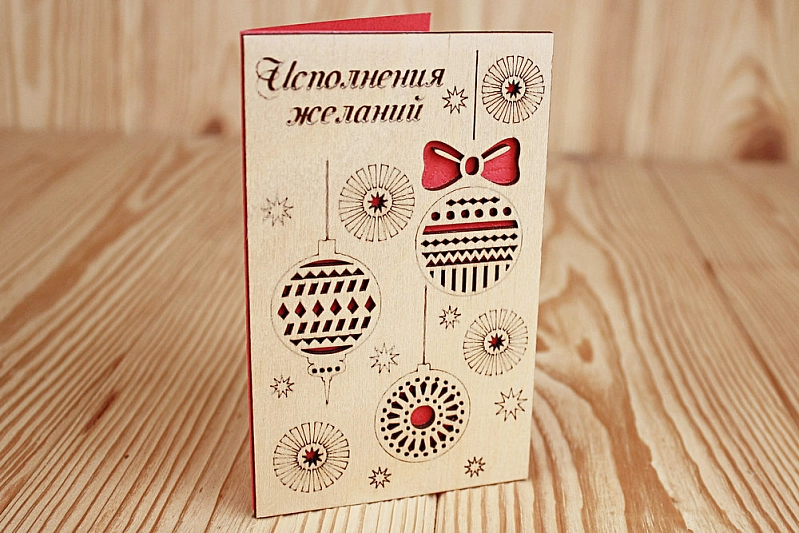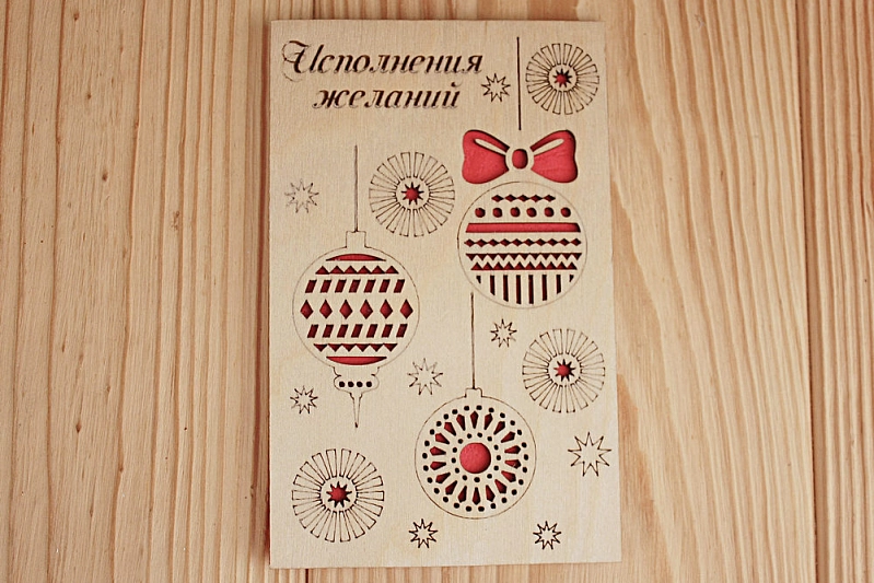 Открытка "Исполнения желаний" (9*14) Фанера 3мм, картон, оформл., Красный, 1 шт.