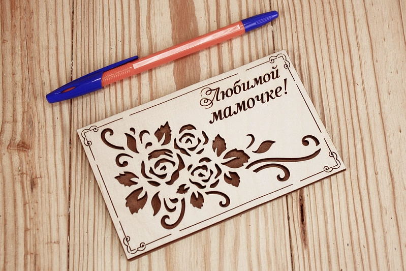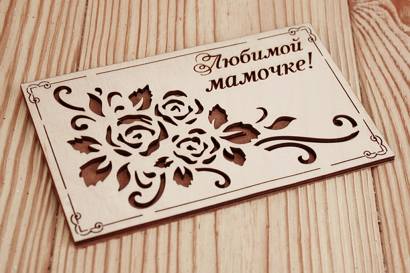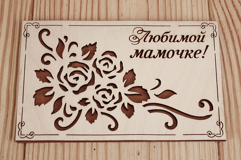 Открытка "Любимой мамочке!" (9*14) Фанера 3мм, картон, оформл., Коричневый, 1 шт.