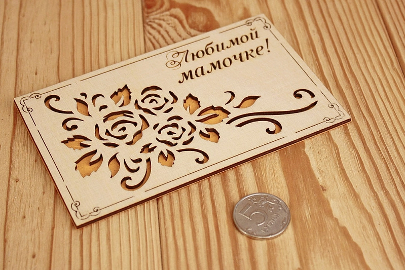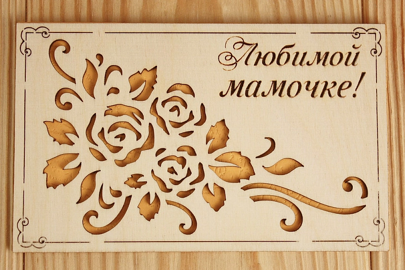 Открытка "Любимой мамочке!" (9*14) Фанера 3мм, картон, оформл., Желтый, 1 шт.