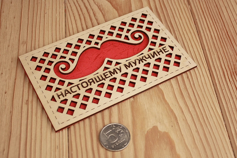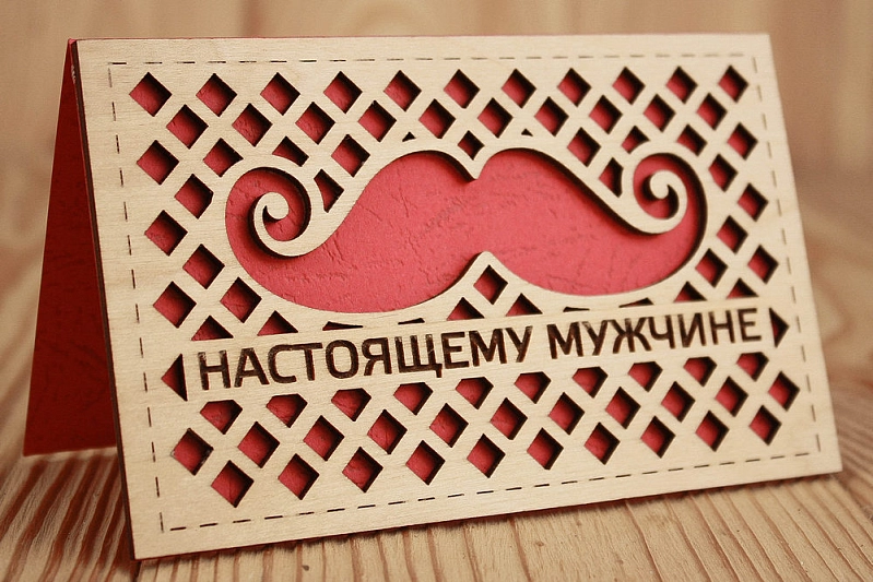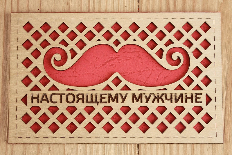 Открытка "Настоящему мужчине" (9*14) Фанера 3мм, картон, оформл., Красный, 1 шт.