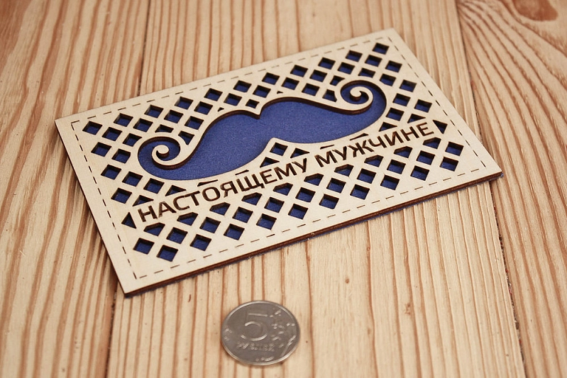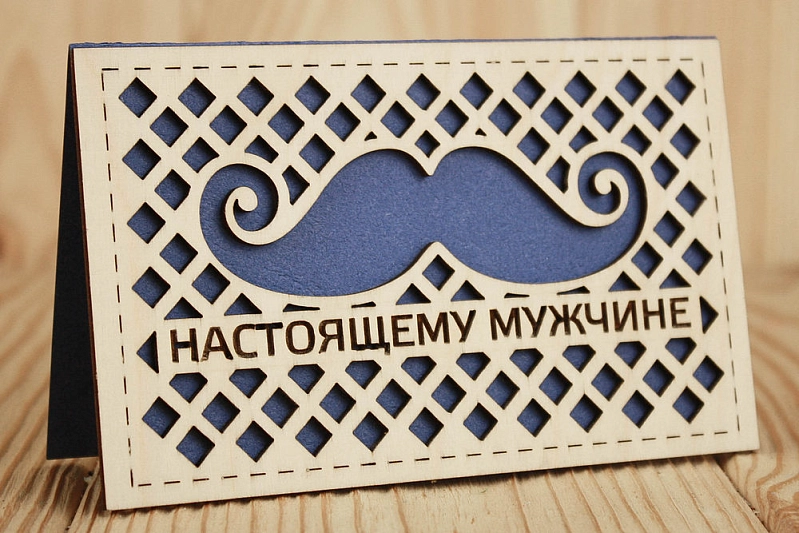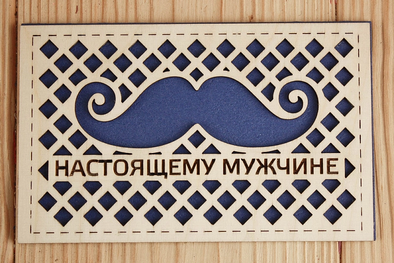 Открытка "Настоящему мужчине" (9*14) Фанера 3мм, картон, оформл., Синий, 1 шт.