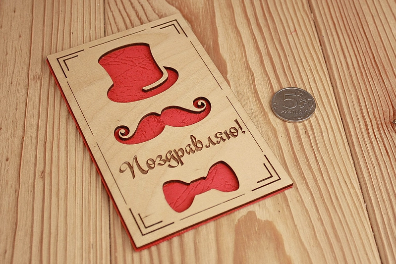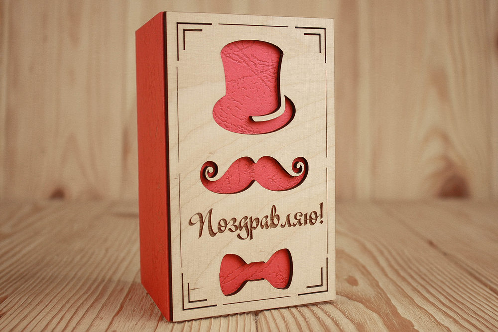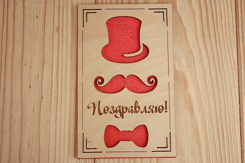 Открытка "Поздравляю!" для мужчины (9*14) Фанера 3мм, картон, оформл., Красный, 1 шт.