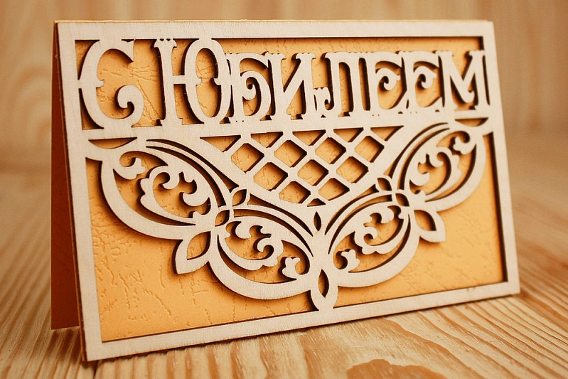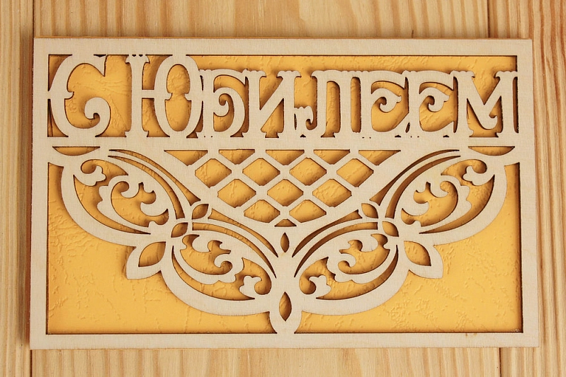 Открытка "С Юбилеем" (9*14) Фанера 3мм, картон, оформл., Желтый, 1 шт.