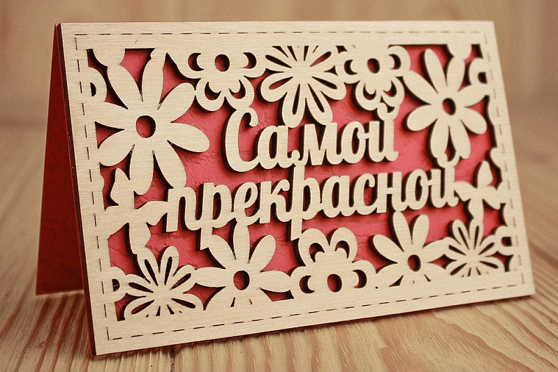 Открытка "Самой прекрасной" (9*14) Фанера 3мм, картон, оформл., Красный, 1 шт.